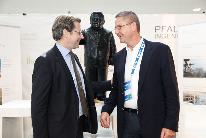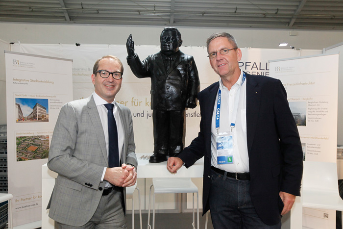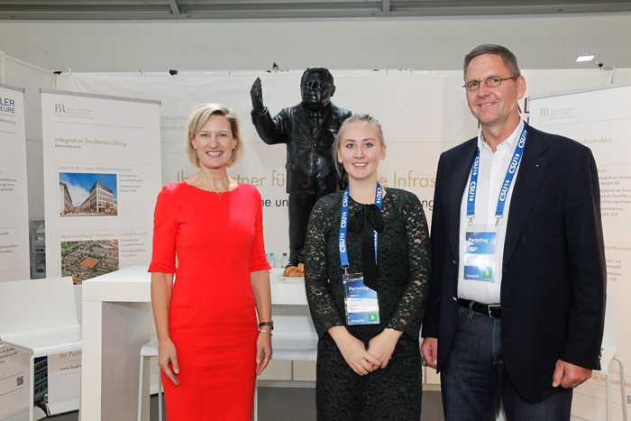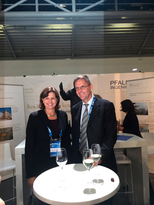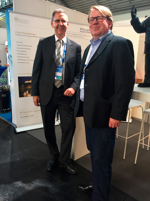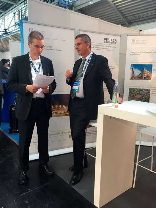 Auf einem Gemeinschaftsstand mit den Pfaller Ingenieuren wurden erfolgreiche kommunale Infrastrukturprojekte vorgestellt, welche von den Bühner Rechtsanwälten vergabe-, beihilfe- und immobilienrechtlich beraten worden sind.