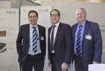Zahlreiche Kommunalpolitiker besuchten den Messestand ebenso, wie Mitglieder der Bundesregierung, Bundestagsabgeordnete, Mitglieder der Bayerischen Staatsregierung und Landtagsabgeordnete um sich über innovative Referenzprojekte der Pfaller Ingenieure und Bühner & Partner Rechtsanwälte im Freistaat Bayern zu informieren.